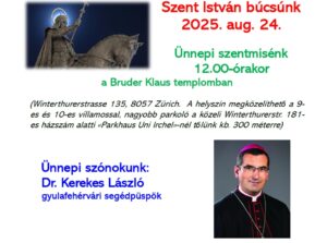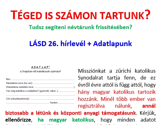 Jelentkezés a missziónkon keresztül már nem lehetséges, közvetlenül a Bruder Klaus Plébánián júl. 4. délutánjáig a következő elérhetőségen: Milchbuckstrasse 73, 8057 Zürich, 043 244 74 44, info@bruderklauszuerich.ch