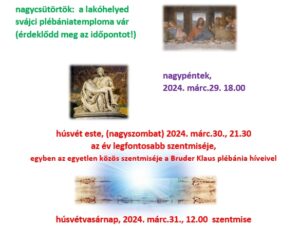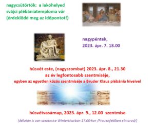 Egyháztanácsunk fontosnak tartja, hogy megismerjük a többség véleményét a szentmiséink időpontjával kapcsolatban. Tovább kattintson ide….