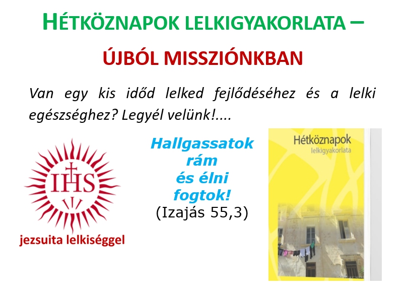 A sok országban közkedvelt „Hétköznapok lelkigyakorlatára“ várunk!