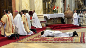 Ez a papság szentsége. Jézus ma is kiválaszt embereket, hogy minél több kegyelme eljuthasson az egyházon keresztül a teremtményekre, hogy megváltása érvényes lehessen minél több emberre. A katolikus (és ortodox) egyházban minden püspök vissza tudja vezetni szentelését Jézus egyik apostolára (kézfeltétellel való szentelés láncszerű folytonossága). A püspökök szintén kézrátétellel és imádsággal szentelik az áldozópapokat és a diákónusokat. Ez a három fokozata van a papságnak, amelyet legalább 6 éves lelki és felsőfokú szellemi képzés előz meg.